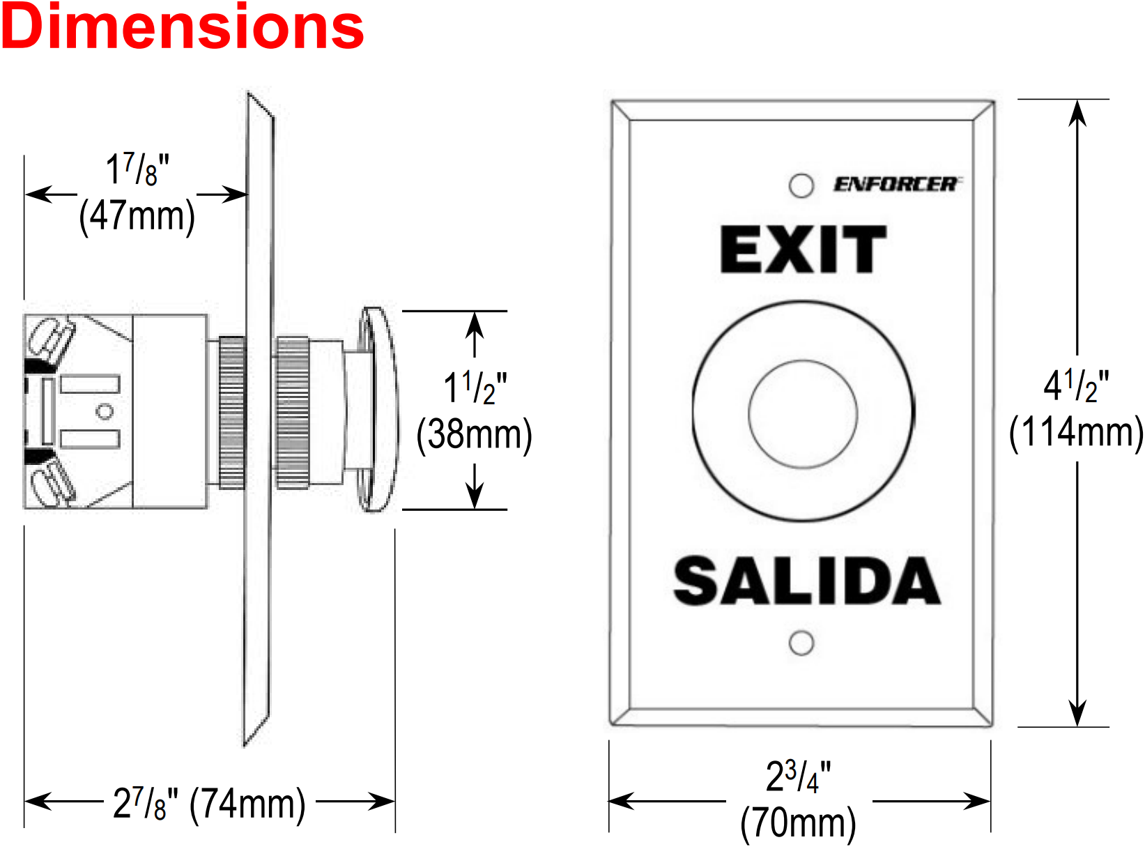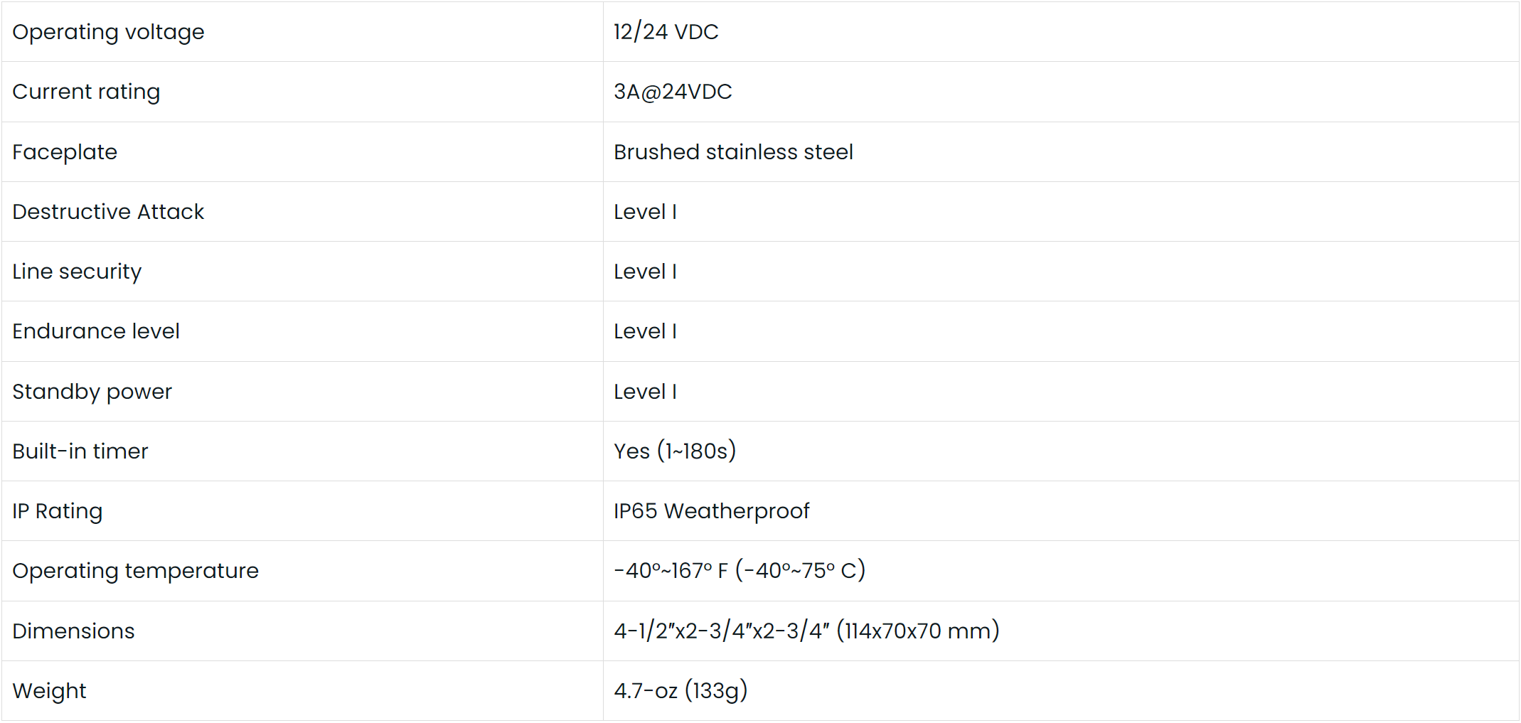 The ENFORCER Weather-Resistant Mushroom-Cap RTE Plates are ideal for many outdoor access situations, with a 1-1/2″ (38mm) diameter mushroom-cap (green or red), single-gang faceplate and NO/NC contact rated 3A@24VDC