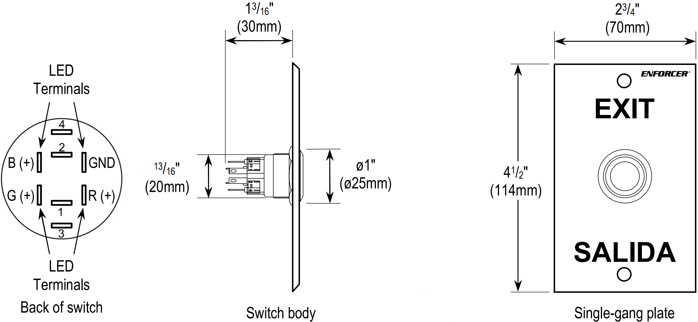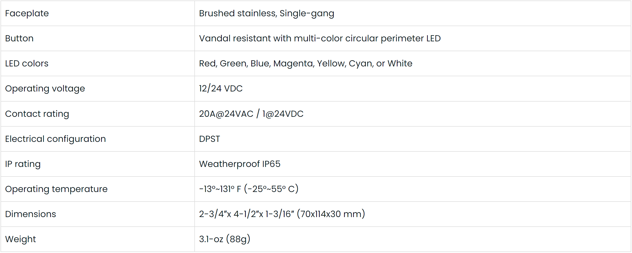 The Enforcer Multicolor Illuminated Vandal Resistant Request-To-Exit Plates use a stainless steel vandal resistant button, illuminated by a circular perimeter LED. The LED color is easily selectable during installation to not only red, green, or blue, but also yellow, cyan, magenta, or white.