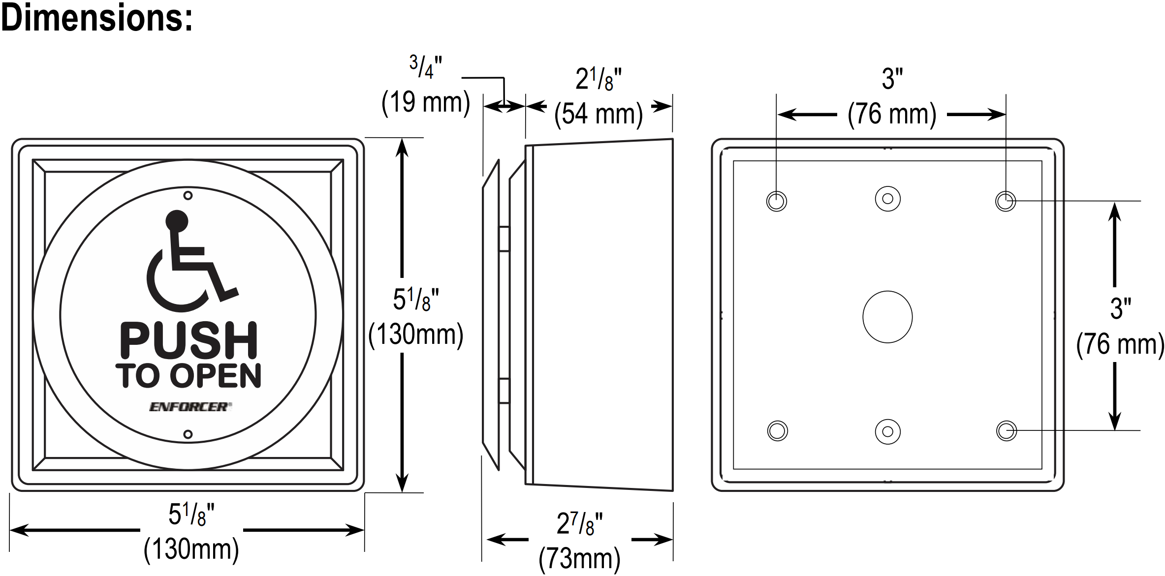 The Enforcer 4.5″ Round Push Plate is designed for easy, accessible entry and exit through public area doors. The 4.5″ Round Push Plate features a large stainless steel button with the International Symbol of Access and “PUSH TO OPEN” engraved for clear and easy visual and tactile identification. Featuring an operating life of over 100,000 cycles and a surface-mount back box for flexible mounting options, the Enforcer 4.5″ Round Push Plate is the perfect solution for reliable, secure, and accessible entry and exit for schools, hospitals, nursing homes, apartments, and other high-density public spaces.