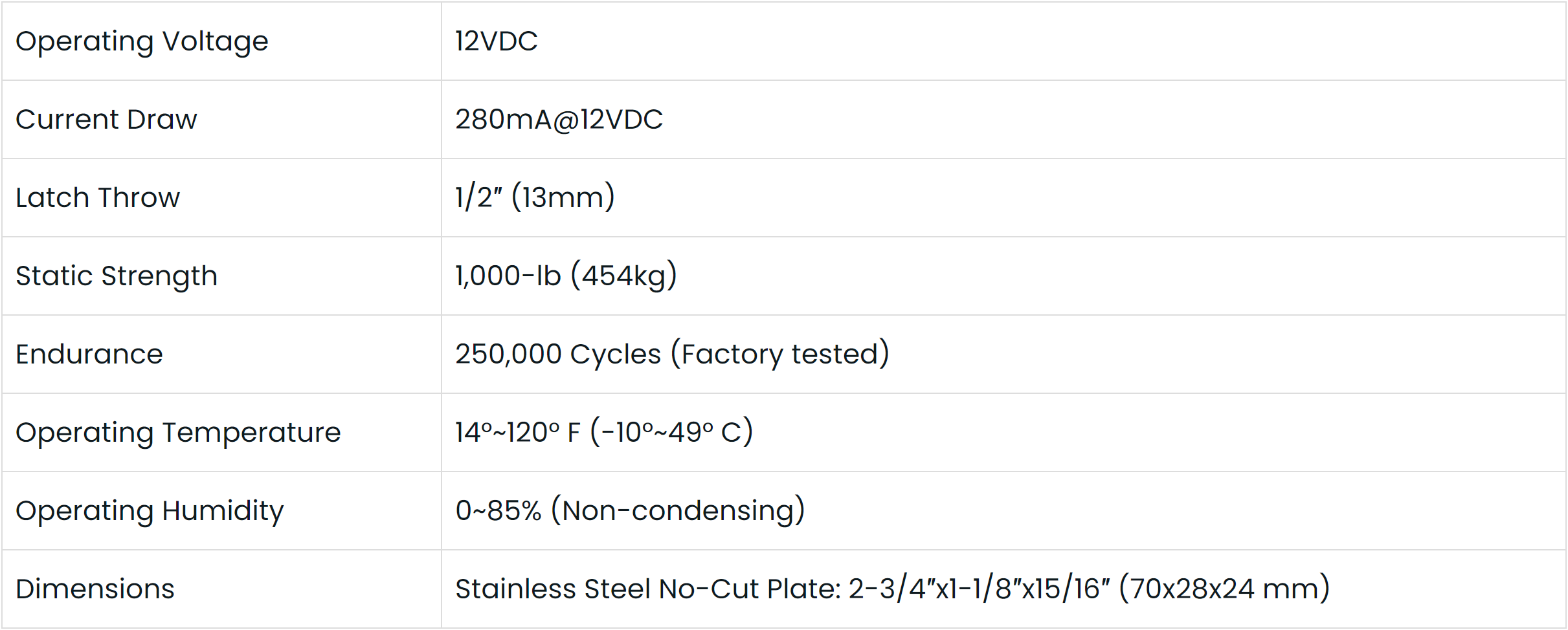 - Fail-secure operation – Door remains locked if power to the strike is lost