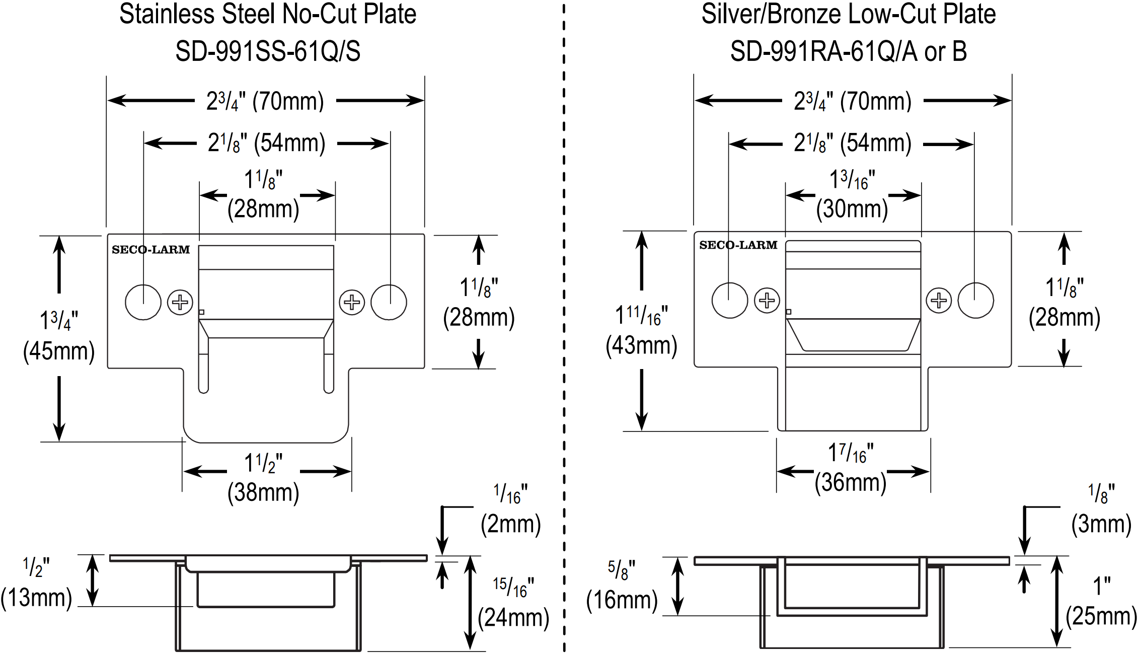 - Optional Bronze-Colored Aluminum Low-Cut* Strike Plate (SD-991RA-61Q/B)available: