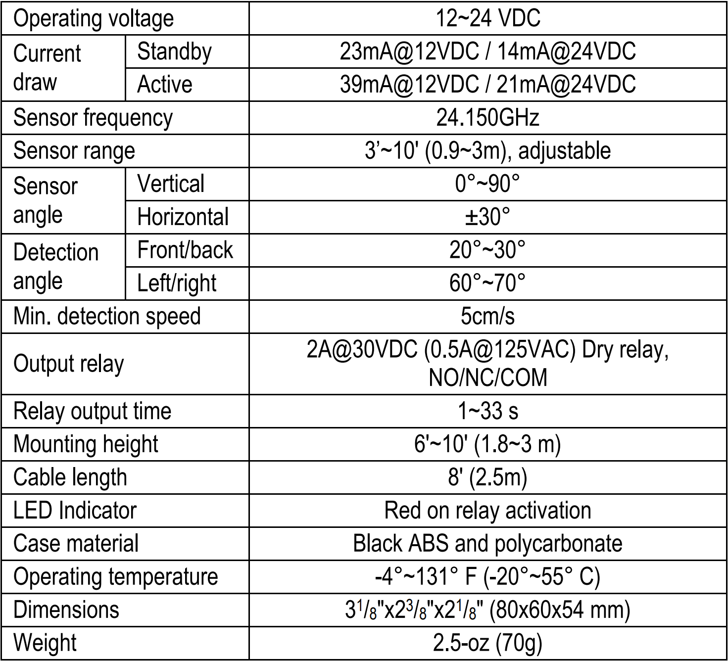 - 10ft (3m) Sensing range, adjustable