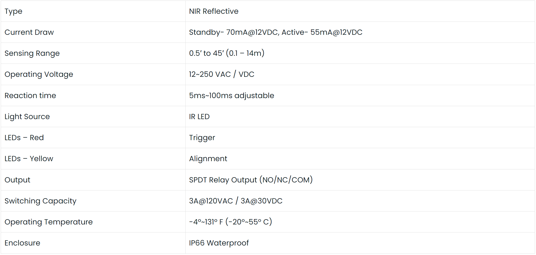 - Adjustable sensing distance and response time – 5~100ms.