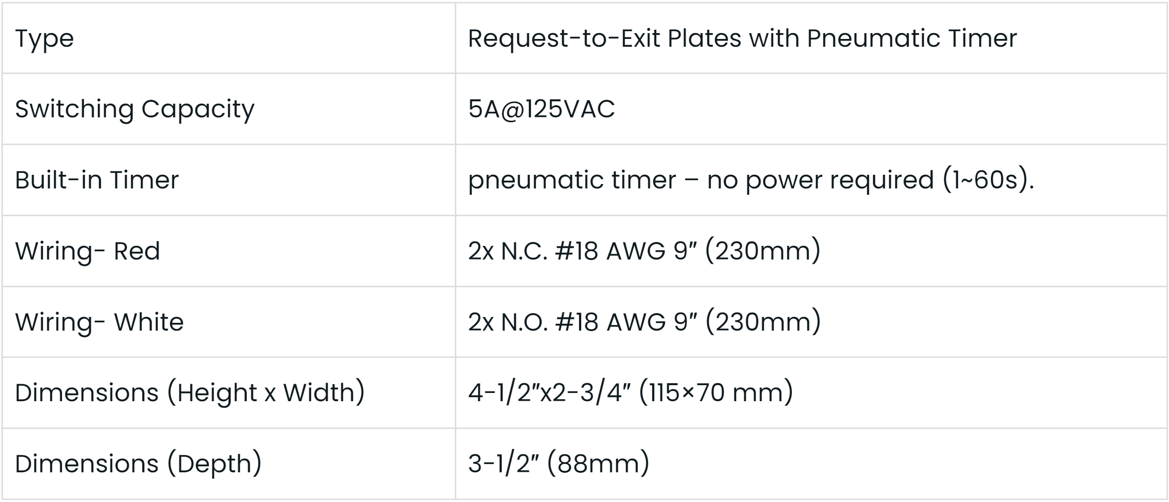 The Enforcer Request-to-Exit Plates with Pneumatic Timer are ideal when providing power to a timer is inconvenient, hazardous, or not conforming with local ordinances and codes. Adjusting the time is easy via a timing screw and can be performed on the spot without tools.