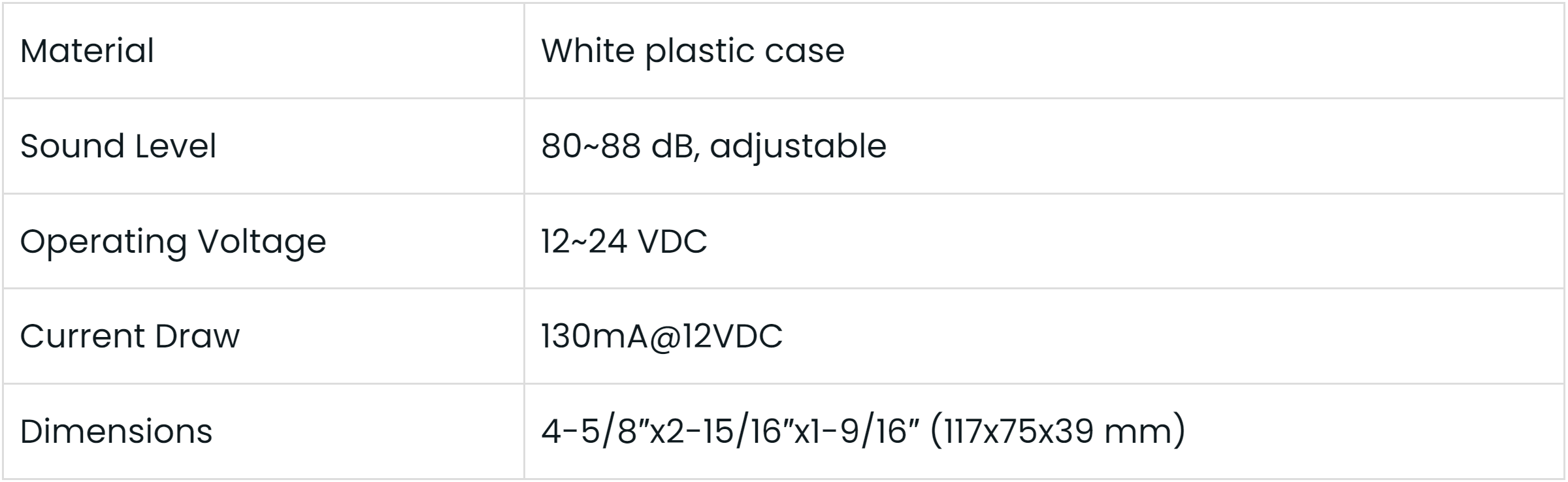 The Seco-Larm SH-532BQ Chime is a flush-mounted, multi-tone (3 selectable chimes), 80~88 dB adjustable (depending on which tone is selected) speaker.
