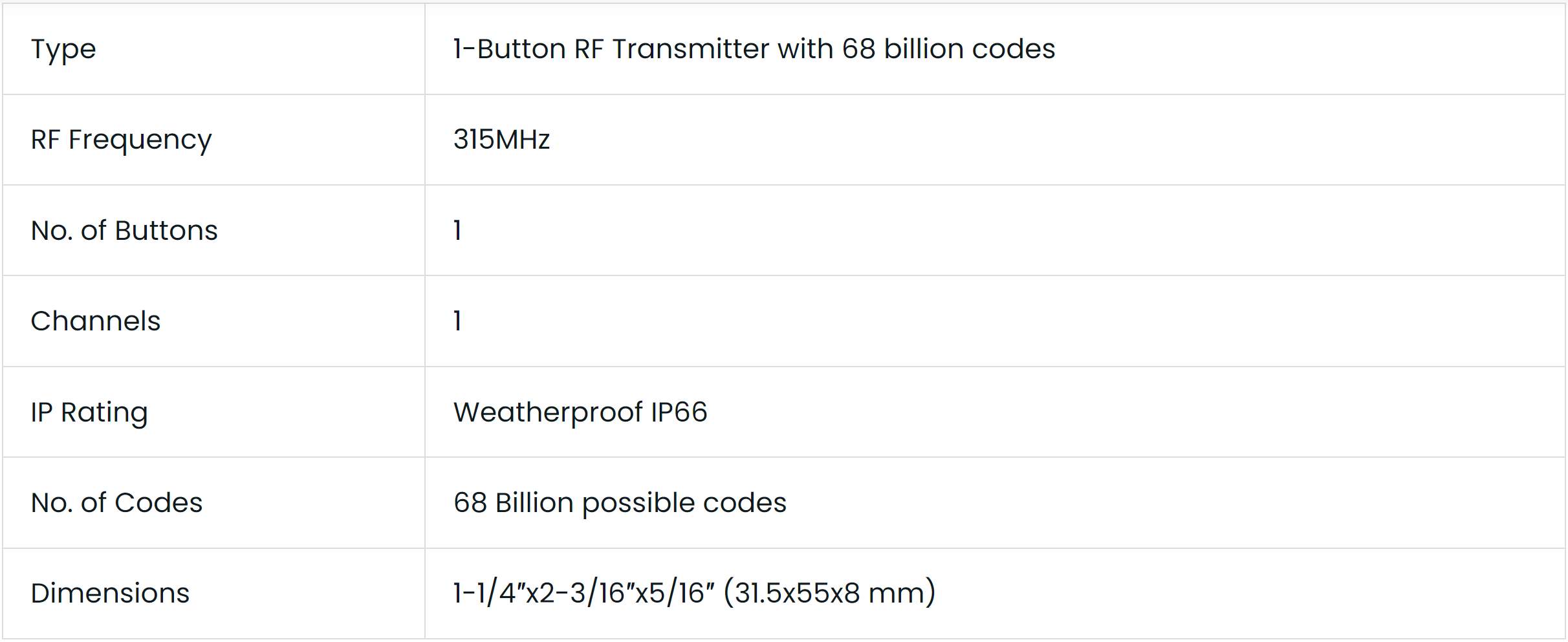 • 315MHz (433.92MHz available)