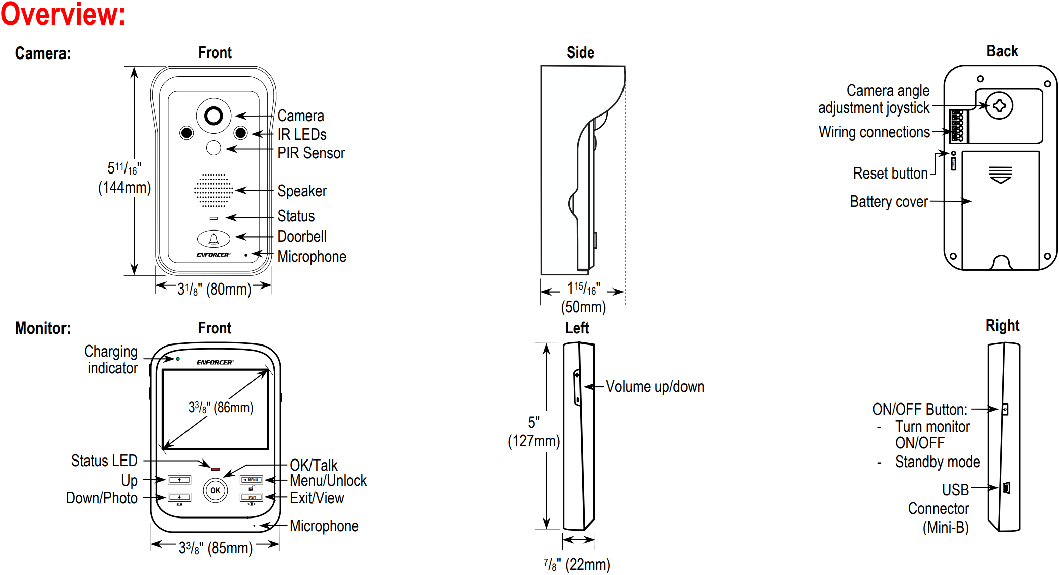 - Handheld monitor's rechargeable battery allows convenient communication with visitors while moving around the premises