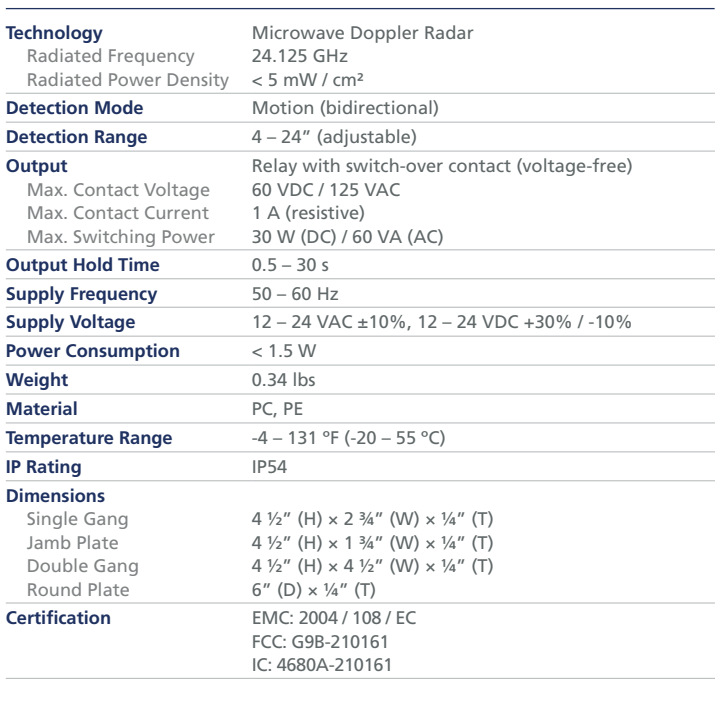 The MS31 detects moving objects such as a hand, cart or wheelchair and reduces touchpoints in high traffic areas commonly found in shopping and transportation centers. Applications requiring hygienic activation include hospitals, pharmacies, clean rooms and foodservice facilities.