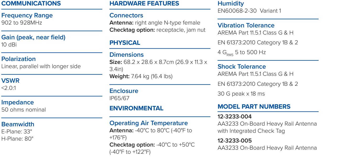 TransCore 12-3233-004 AA3233 Heavy Rail Antenna