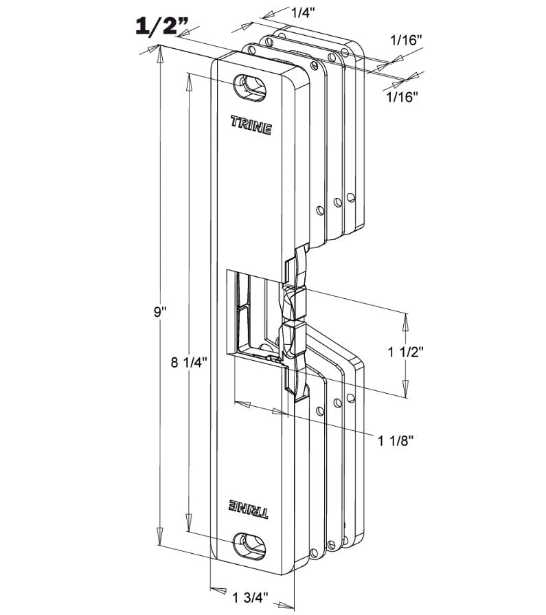 - 1/2” thick Surface Mount electric strike comes with 1/4” and two (2) 1/16” Spacers plates -- the most versatile rim panic strike provides the flexibility of 6 different sizes!