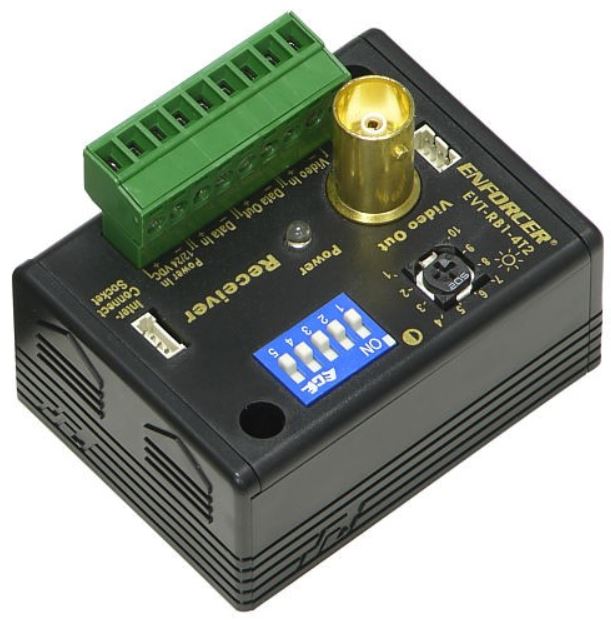 - Also transmits either PTZ (pan/tilt/zoom) data or low voltage (12-14 VAC/VDC) to CCTV cameras.