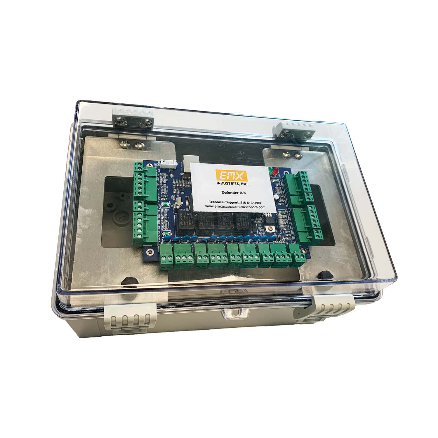 Todo lo que te gusta del controlador de acceso con relé cuádruple Defender , alojado en un gabinete IP65.