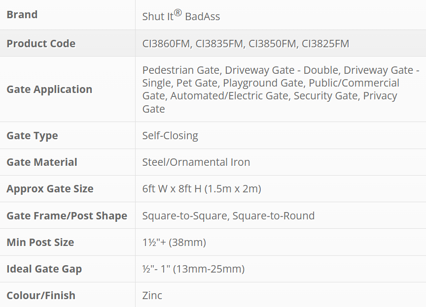 Juego de bisagras para portón con cierre automático soldables y montaje frontal Shut It® BadAss™ CI3850FM de D&D Technologies