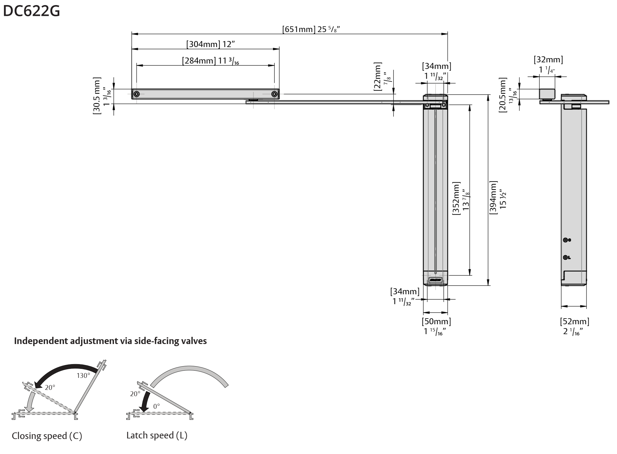 - Adjustable Speeds: Independently adjustable closing and latch speeds for customized operation