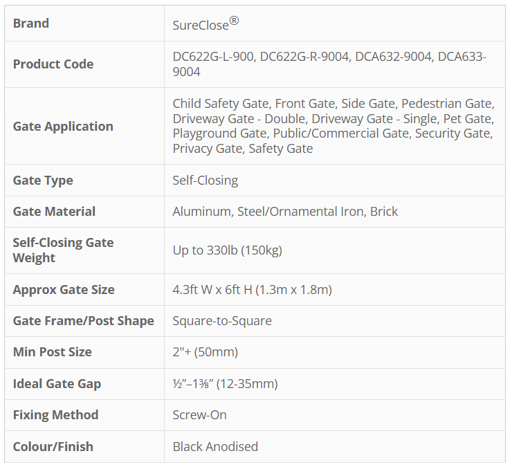 - Versatile Compatibility with face or center mounted hinges and almost any pedestrian and security gate