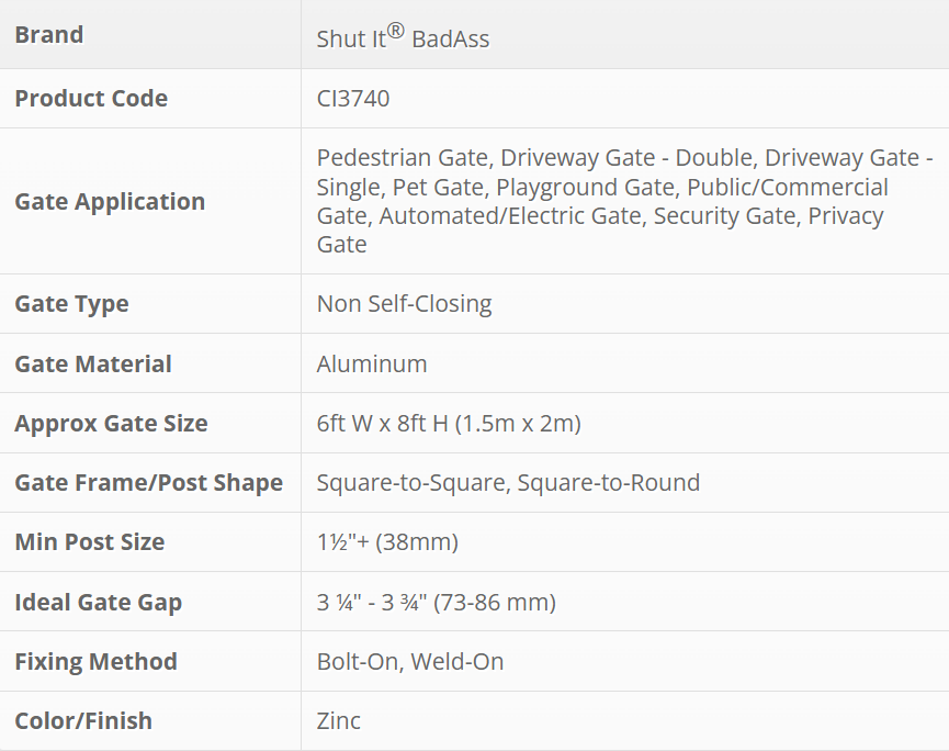 Con placas de montaje anchas y cuatro puntos de anclaje, las bisagras BadAss Half Bolt-on de 4" y 6" reducen la flexión del poste de la cerca, previniendo la fatiga. Cuatro puntos de anclaje ubican los pernos a los lados, en lugar del centro del poste, para una conexión sólida y resistente. Las bisagras para portones Shut It se ensamblan en EE. UU. con los primeros rodamientos sellados de alta temperatura y sin mantenimiento de la industria, que se pueden recubrir con pintura en polvo de forma segura junto con las bisagras instaladas en el portón.