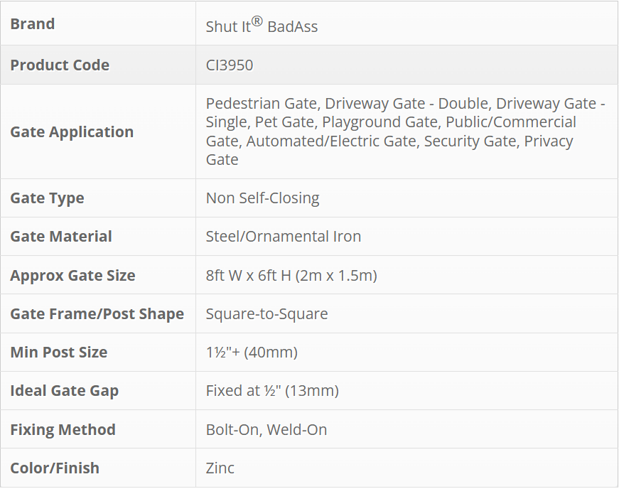 La bisagra de barril BadAss es la bisagra para portones más resistente y versátil del mercado. Ideal para casi todas las instalaciones de portones de alta resistencia, la bisagra de barril BadAss es revolucionaria en la industria. Puede instalarse donde se requiere una apertura total de 180 grados y reduce la distancia entre el poste final y el portón a menos de 13 mm (1⁄2").