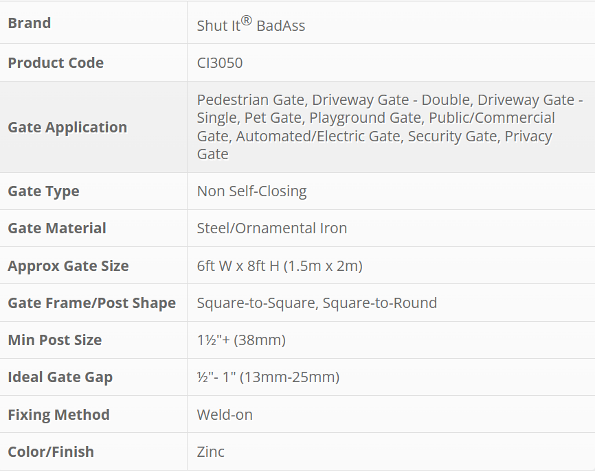 Las bisagras de montaje frontal se fabrican con los primeros rodamientos sellados de alta temperatura y sin mantenimiento de la industria, que se pueden recubrir con pintura en polvo junto con las bisagras instaladas en la puerta. El montaje frontal se abre 180° para un ángulo de apertura óptimo y está disponible en modelos atornillados o soldados. Se ajustan horizontalmente para una instalación perfecta y permiten un movimiento adecuado de la puerta, y su ajuste permite espacios de hasta 13 mm (1/2"). Su construcción galvanizada proporciona una protección duradera contra la oxidación y la corrosión. Las bisagras Shut It han sido probadas durante más de un millón de ciclos de apertura y cierre y cuentan con una garantía limitada de por vida.