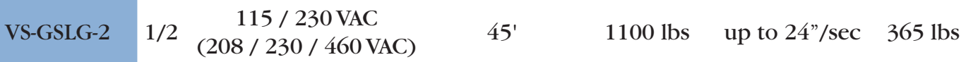 El variador de frecuencia del VS-GSLG permite que este operador tenga un arranque y una parada suaves y mueva puertas de hasta 45' y 1100 lb a velocidades de hasta 24" por segundo.