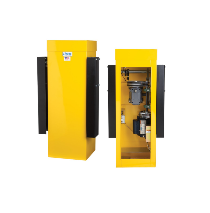 Operador de barrera lineal Osco SG-25-211 de 1/2 HP, 115 V, monofásico, para aplicaciones vehiculares industriales de bajo tráfico. Diseñado para servicio continuo a baja velocidad, con contrapeso para un brazo de madera Wishbone de hasta 7,62 m y una velocidad de apertura de 11 segundos.