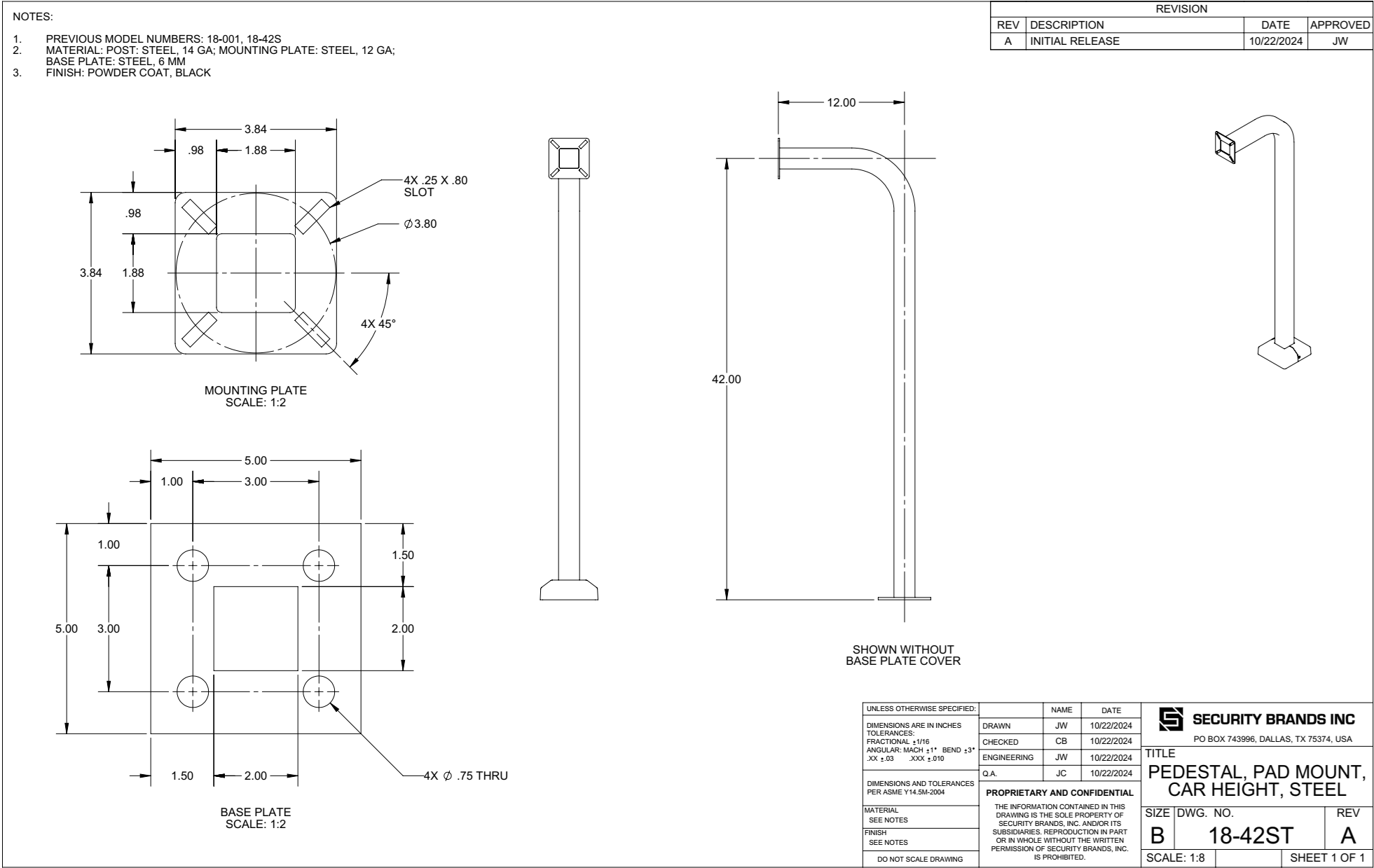 Base de pedestal Security Brands 18-42ST, altura del vehículo (42 pulgadas), acero