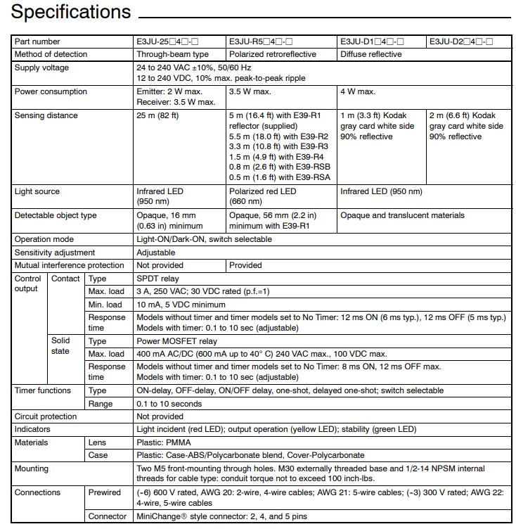 Sensor de haz pasante de larga distancia con distancia de detección máxima de 85 pies.