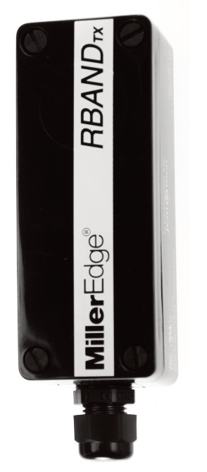 Hasta 6 transmisores en 2 canales. El transmisor está diseñado para soportar entornos exteriores exigentes. El Miller Edge RBand elimina la necesidad de cableado fijo en los bordes sensores y cumple con la norma UL 325 de 2016 para operadores de portones comerciales.