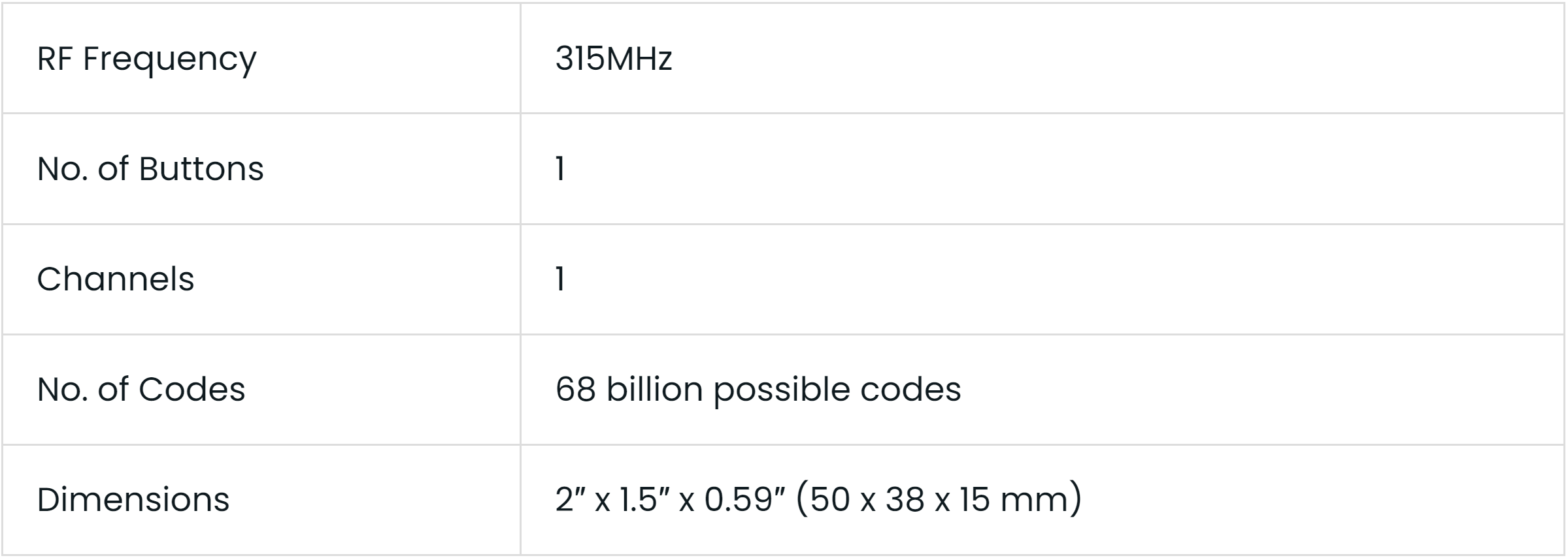 - Frecuencia 315MHz.
