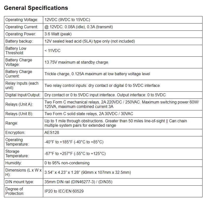 - Solución inalámbrica completa para dos relés en cada dirección entre la Unidad A y la Unidad B