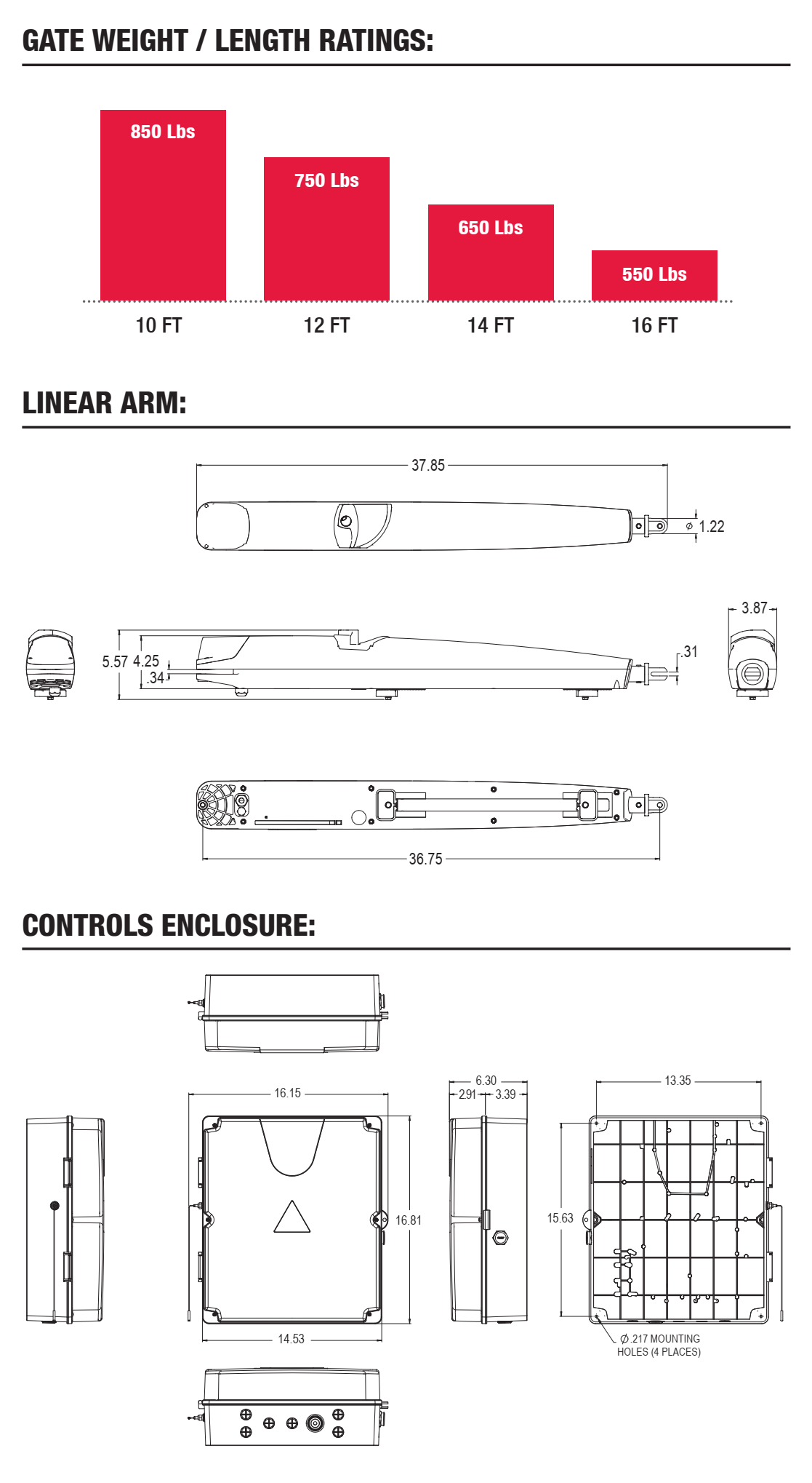 - Rated for use on gates up to 16 ft wide or 850 lbs