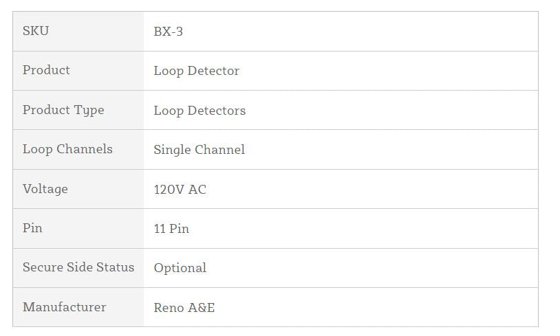 Detector de bucle de la serie BX de Reno A&E