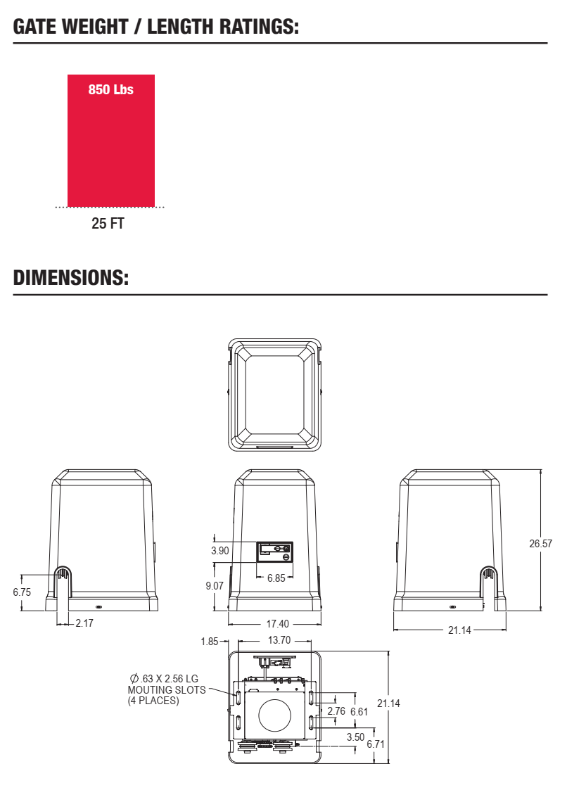 - Rated for use on gates up to 25 ft long and 850 lbs