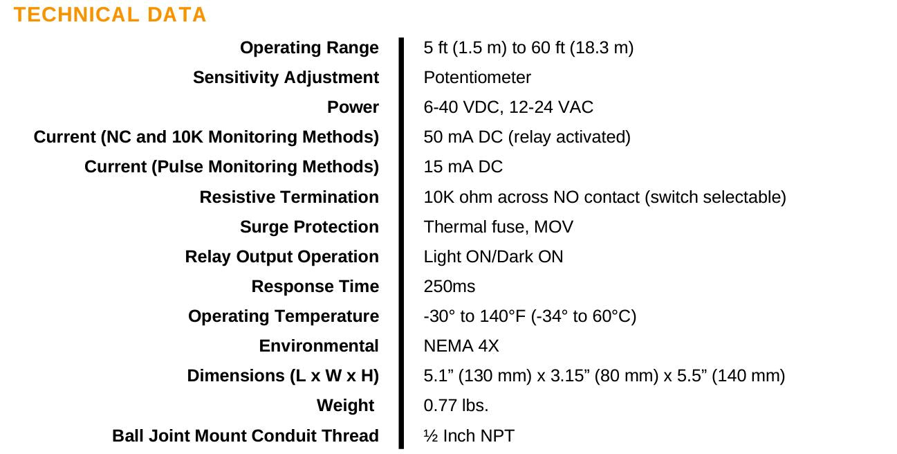 The IRB-RET2 universal UL325 retroreflective photoeye has 6 monitoring interfaces: