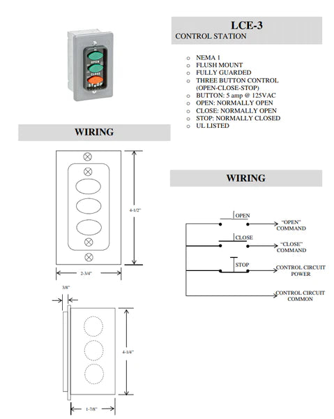 LCE-3 OPEN / CLOSE / STOP NEMA 1 Control Station