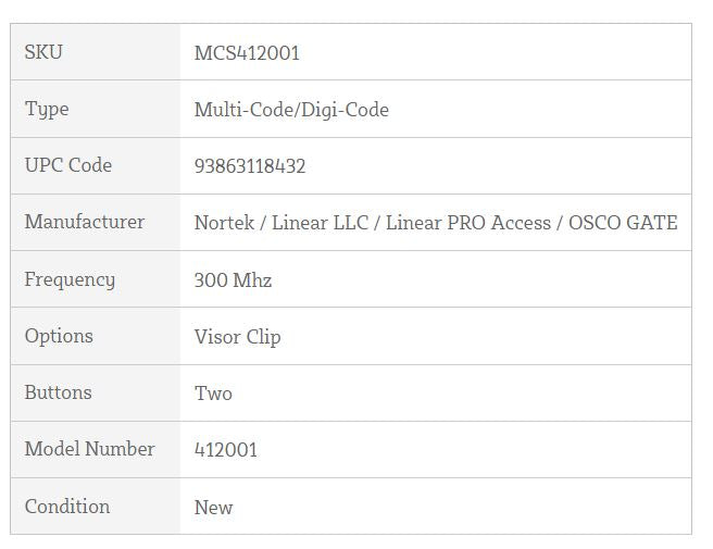 The Model 4120-01 2-Channel Visor Transmitter is a portable transmitter designed for automatic door and gate operator applications.