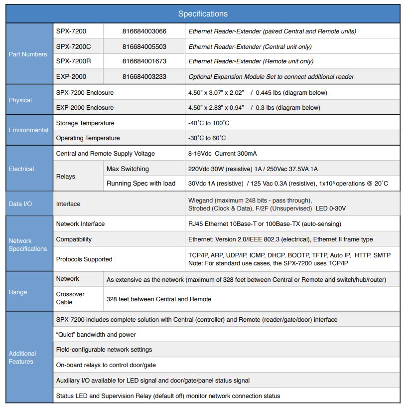 RFID SPX-7200 Single Door/Gate Supervised Reader Exten Ethernet