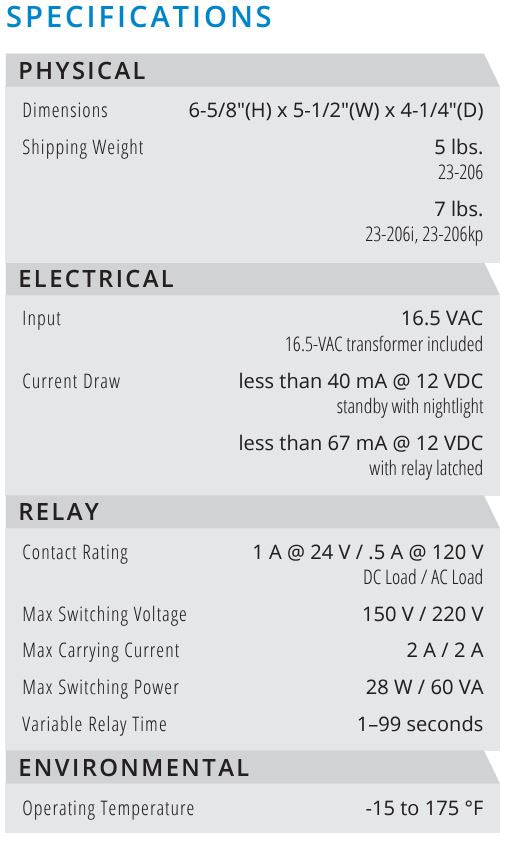- Contact Rating 1A @ 24 VDC / .5A @ 120 VAC